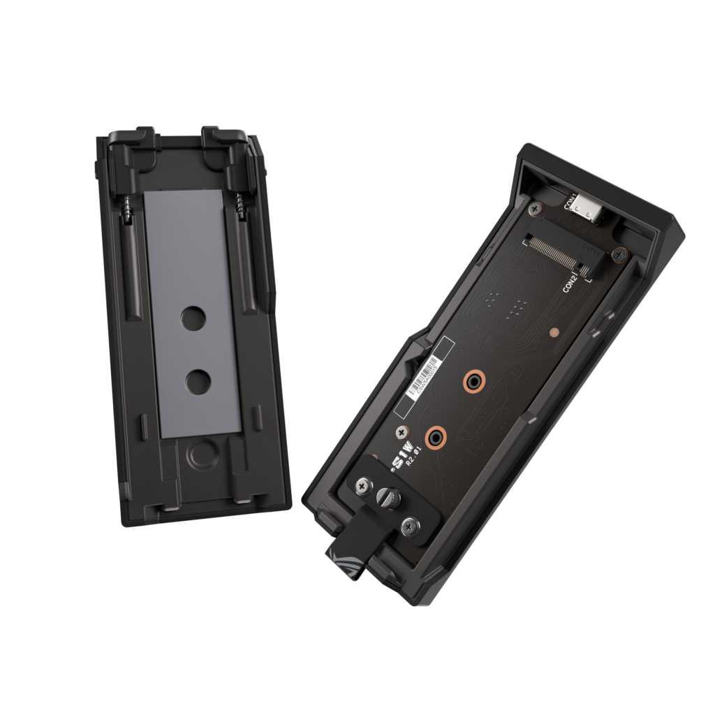 The ROG Strix Aiolos delivers high-speed portable performance with USB-C® 3.2 Gen 2×2 connectivity supporting transfer speeds of up to 20Gbps, enabling users to move large media files or entire game libraries with ease. Its versatile dual M.2 interface, compatible with both NVMe PCIe® (2242/2260/2280) and SATA SSDs, offers flexible upgrade and expansion options for a wide range of user needs. For effortless oversight, the enclosure features the exclusive ROG SSD Dashboard, which features a custom UI that provides users with a complete real-time overview of SSD status, performance, and other key metrics. Tailored for ROG enclosures, it makes storage management simple and intuitive.