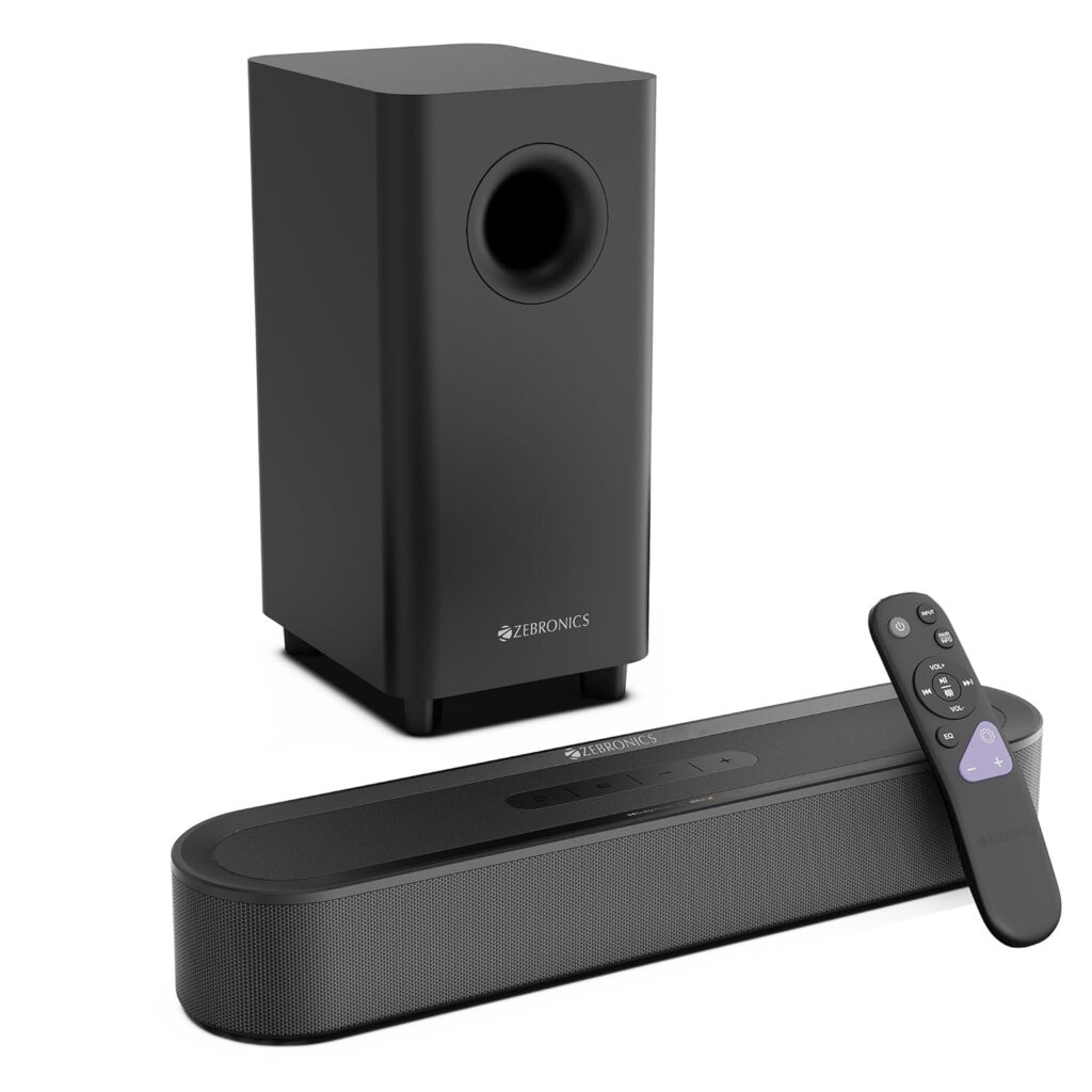 If you don’t have a lot of space in your living room, a soundbar can be a great option to enhance TV audio without the clutter of tangled wires and satellite speakers. Zebronics’ Jukebar 9580C is one such device that offers an immersive listening experience. It is a sleek system that comes with a matte finish and delivers 320W RMS sound output with a 13.33cm subwoofer and dual soundbar drivers, translating to a loud, room-filling audio suitable for movies and music.
